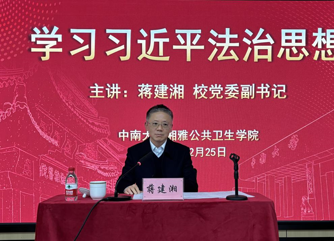 2024年12月25日上午10点,校党委副书记蒋建湘在湘雅公共卫生学院622讲授“学习习近平法治思想”专题党课,湘雅公共卫生学院与黄漫