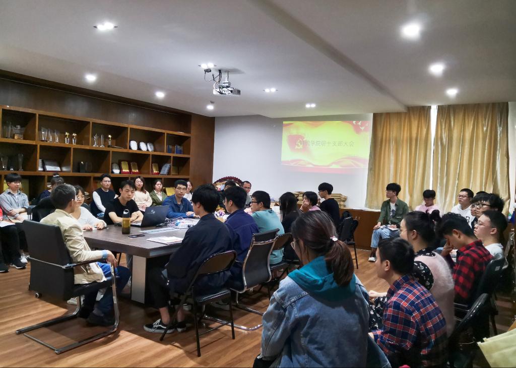 研十支部在铁道校区二综418举行支部党员大会。本次会议内容主要有三项:第一项是支部重组后新同志的见面介绍以及新支委的选举工作;第二项党员发展工作;第三项是开展党日主题活动。