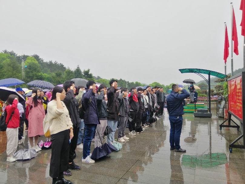 参观完故居后,我们一起去了毛泽东铜像广场,我们怀着无比崇敬的心情走近瞻仰了毛主席铜像,向毛主席的铜像献花、敬礼,向毛主席三鞠躬。随后,雷皓老师带领支部同学一起重温入党誓词,庄重地许下对党和人民的承诺。