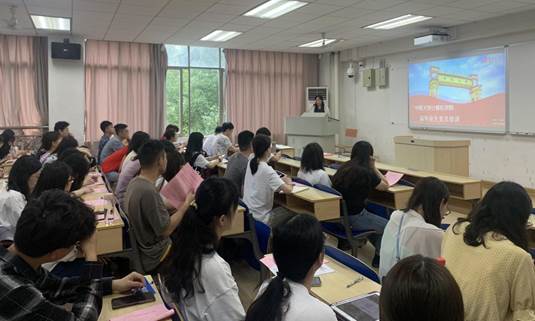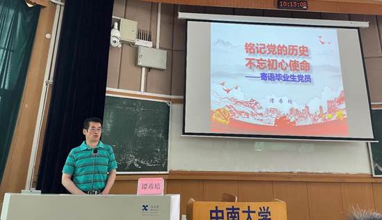 随后,谭希培教授以“铭记党的历史,不忘初心使命”为主题,为毕业生党员上了一堂生动立体的党课。谭老师带领同学们回顾了百年党史,激励同学们通过学党史,明理增信,要从我党百年历史中汲取奋进力量,延续党的优良传统和精神血脉,在今后的学习、生活、工作中开拓创新、积极进取,挥洒青春汗水,创造精彩的人生。谭老师还告诫青年党员同学,要珍惜时光,不懈拼搏奋斗,努力成为黄漫