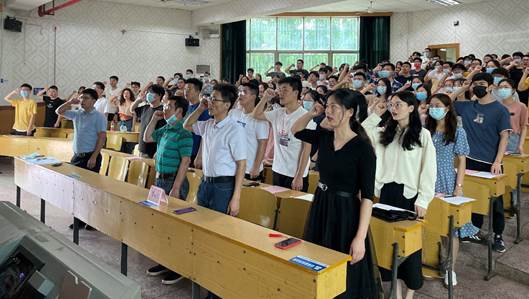 会议伊始,全体党员重温入党誓词。在宏亮庄严的宣誓中,全体毕业生党员再一次从入党誓词中感悟共产党人的初心,感悟其中镌刻着的百年来中国共产党的使命。