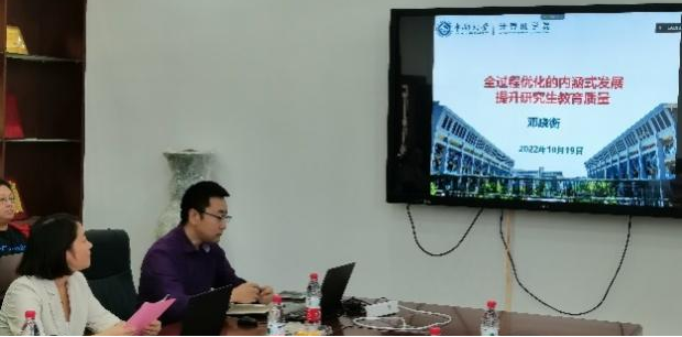 主持人漆华妹书记宣布以课程思政为导向的党性教育专题研讨会,书记介绍到场领导、老师,并对校课程思政专家李耀庄教授、王方教授亲临现场指导表示感谢。漆书记介绍本次研讨会由邓晓衡副院长(因会议冲突,由张晓勇副主任代为分享)分享“全过程优化的内涵式发展提升研究生教育质量”,雷文太主任分享“以生为本的本科人才培养模式”,漆华妹书记分享“课程思政+专业认证“专业-课程-课堂”育教融合” 的专业思政建设实践。漆书记指出,专业是实践启智育人的核心责任体,通信工程系一方面以“服务需求、提升质量”为目标,坚持立德树人根本任务,依托学校特色,坚持内涵式发展,不断提升研究生培养质量,为国家培养更多德才兼备的高层次人才。同时,以学生为中心,从培养方案设计、解读、落地各方面进行本科生培养,夯实基础教育,实践本科生到研究生这一横向线全程人才培育建设;另一方面,从专业到课程到课堂,从顶层设计的整体之道到课程的局部之术这一纵向线阐述了思政建设的具体实践,并以工程认证为抓手,不忘初心,从学生的发展为目标架构培养模式。整体工作横向纵向结合,实施全程全员全方位思政建设,最后实现党性教育。