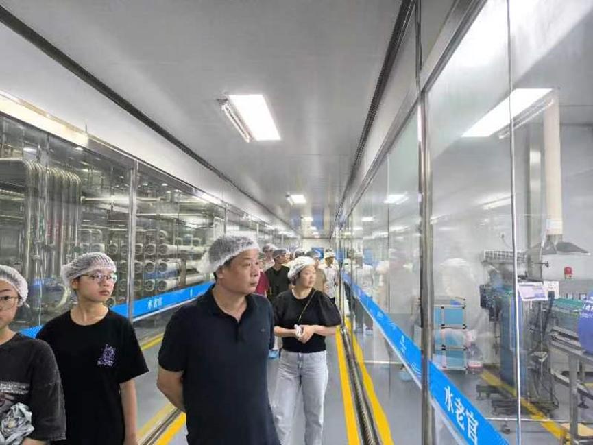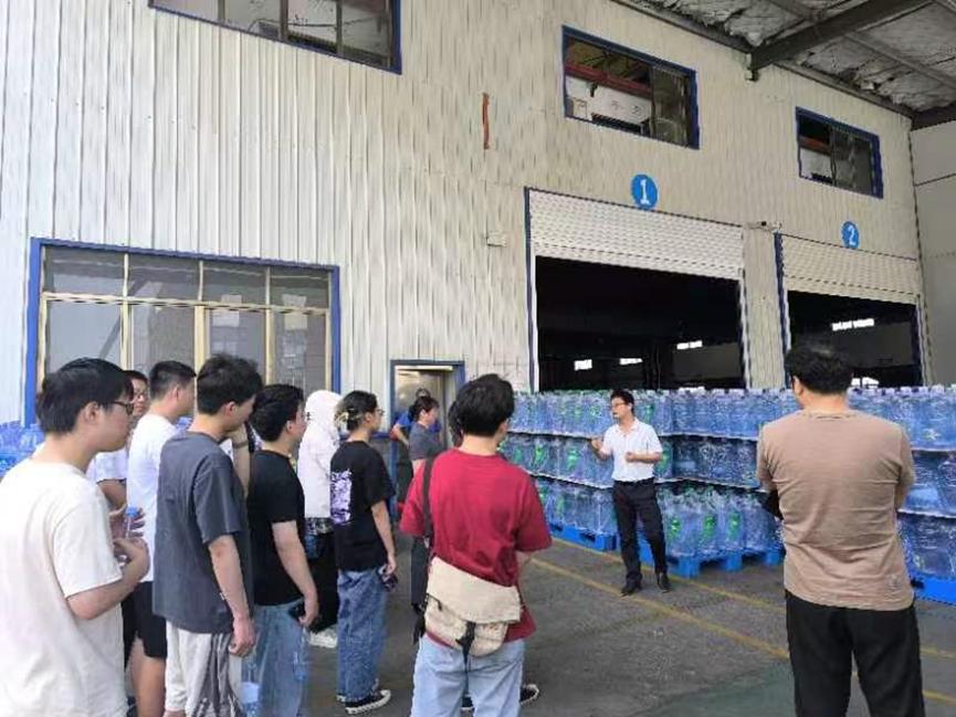 首先,师生一行人在企业工作人员的引导下参观了饮用水的生产车间,了解了安全饮用水生产工艺。参观过程中,工作人员详细介绍了从水源选择、原水处理、净化过滤到包装出厂的整个生产流程,让大家对饮用水的质量保障有了更加直观的认识。