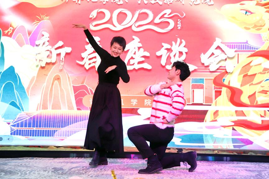 活动当天,现场被布置得温馨而雅致,彩灯闪烁,暖意融融,为即将上演的精彩节目营造了浓厚的氛围。随着主持人的热情开场,学院领导集体上台向全体教职工致以最诚挚的节日祝福,温暖话语如同春风拂面,让在场的每一位教职工都感受到了来自学院的关怀。