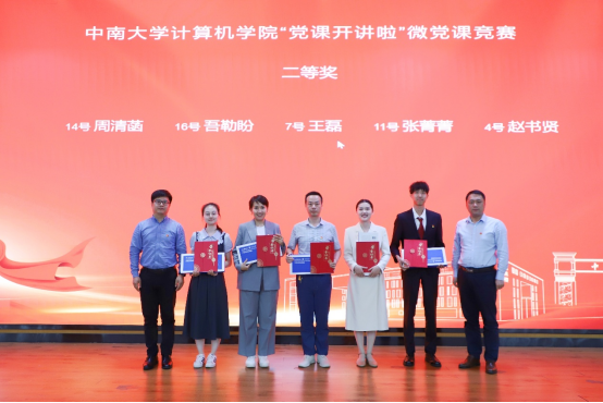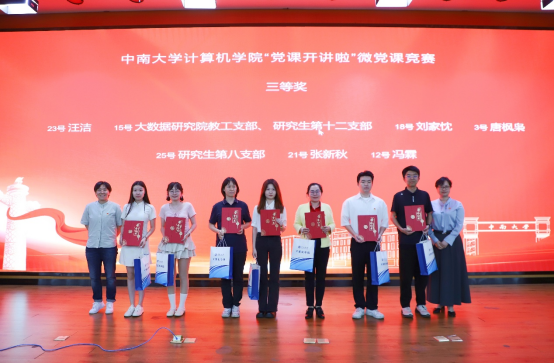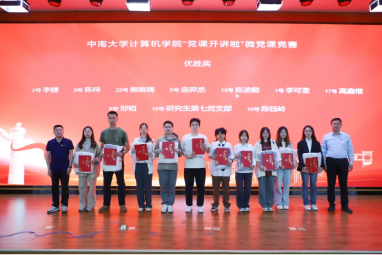 竞赛环节,来自学院各党支部的师生党员聚焦学习贯彻习近平新时代中国特色社会主义思想,结合深入贯彻中央八项规定精神学习教育,以微党课形式,讲党的理想信念、初心使命和优良传统,展示中南共产党人在实施新时代立德树人工程、实现高水平科技自立自强中贡献力量的优秀事迹,带来了一场有党味、有温度、有深度、有情怀的微党课盛宴,选手们声情并茂的讲述、新颖独特的设计,赢得了现场观众的阵阵掌声。