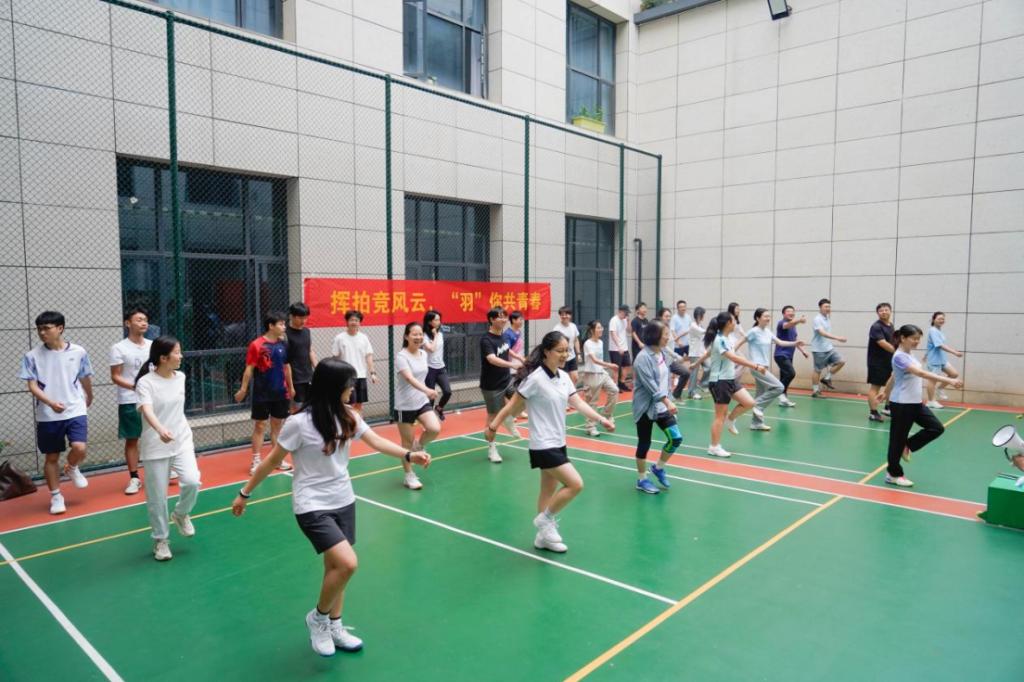 研究生师生羽毛球赛赛事开幕!”为确保参赛选手以最佳状态投入比赛,教务办主任戚红姣老师带领全体师生进行了短暂而充分的热身活动。随着热身环节的结束,师生羽毛球赛正式拉开帷幕。