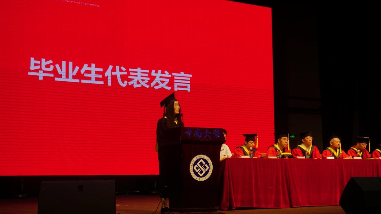 随后,王玮副教授作为教师代表发言。他谈到当前环境下同学们可以大有作为,同时,也希望同学们孝敬父母,常回家看看。接下来本科毕业生代表通信工程1501班杨柳同学、研究生代表刘尚同学依次发言,回忆了和老师、同学们的点点滴滴,表达了对母校的感谢与不舍,然后学生家长代表徐向立发言,表达了对学校和学院的感谢。