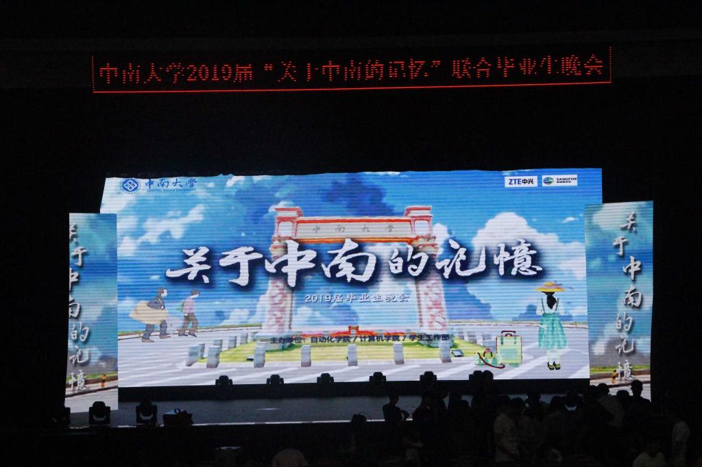 、自动化学院于南校大礼堂共同举办“关于中南的记忆”2019届毕业生晚会。校党委组织部副部长赵永正老师,校团委书记刘正宗老师,学工部副部长易险峰、武装部副部长徐旭敏老师,黄漫