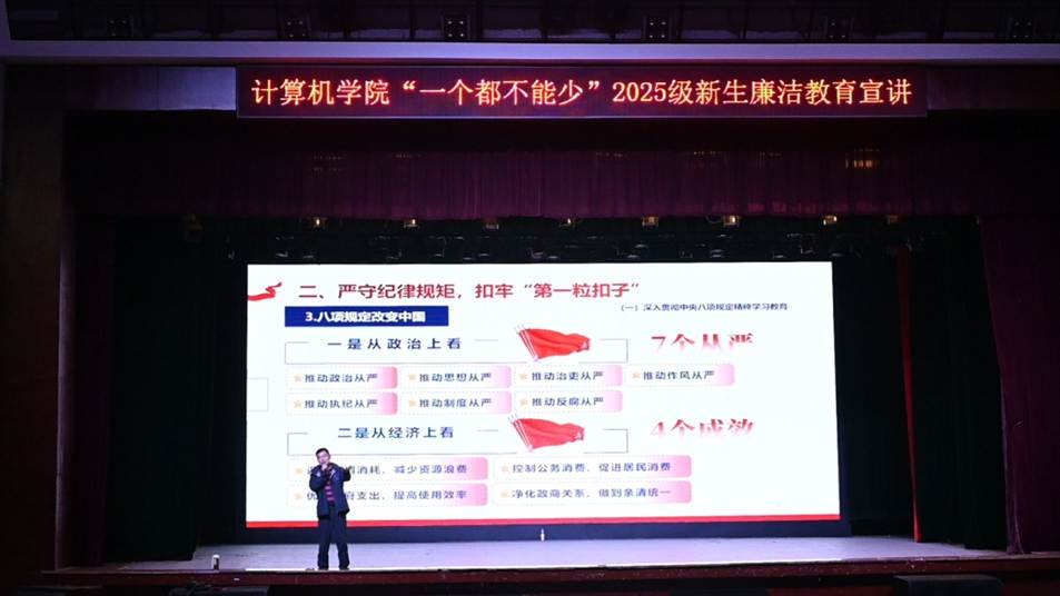 于麓南校区礼堂开展了“扣好第一粒扣子”主题2025级新生廉洁教育活动。本次教育活动由黄漫