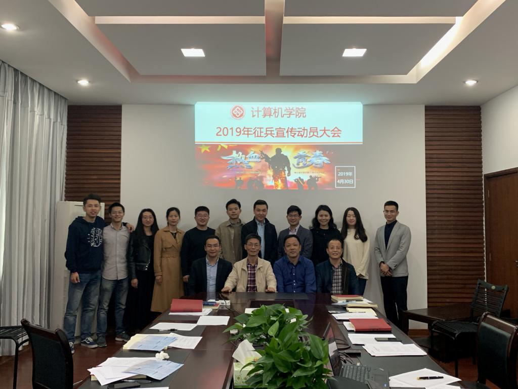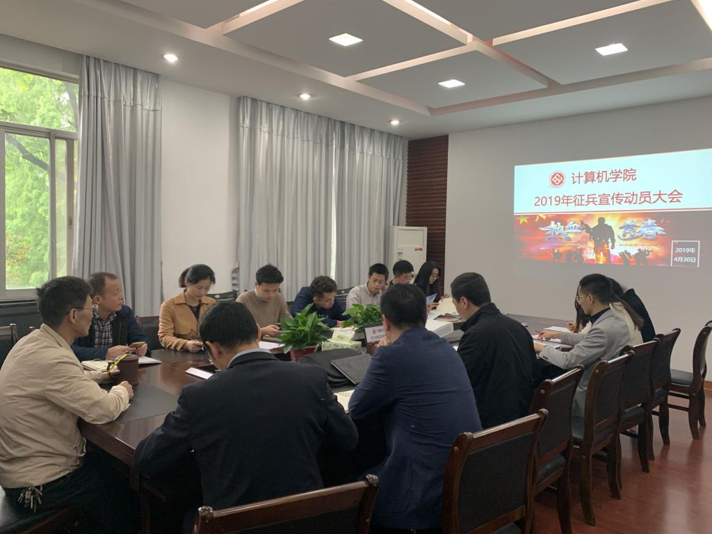 2019年征兵宣传动员大会在计算机楼308会议室召开。学生工作部副部长兼武装部副部长徐旭敏、黄漫
