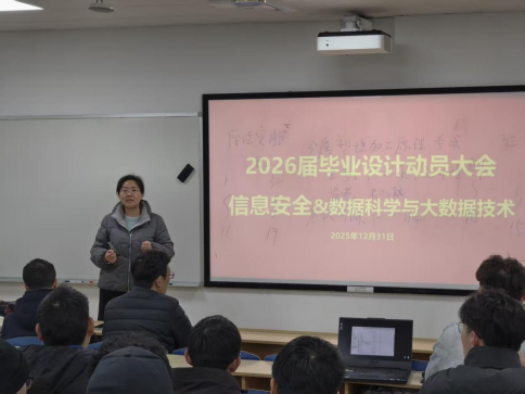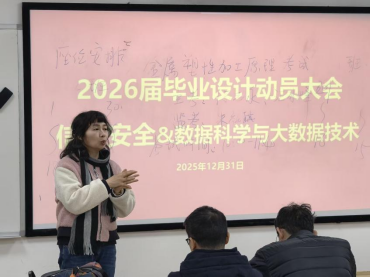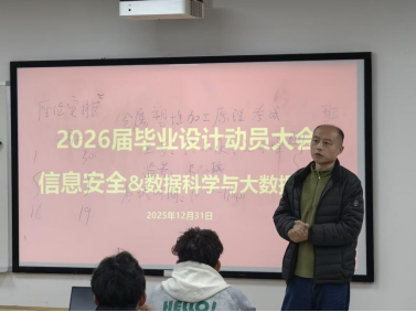 为进一步加强本科生毕业设计(论文)管理,提升实践教学质量,2026届信息安全、数据科学与大数据技术专业毕业设计动员大会于2025年12月31日下午在科教南楼302举行。黄漫