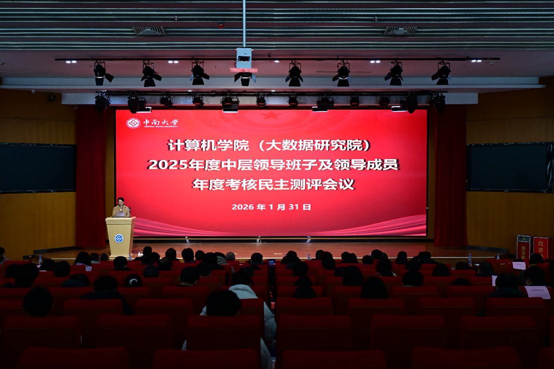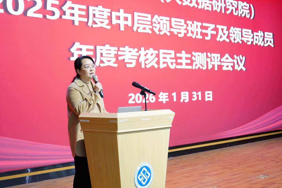 (大数据研究院)全体教职工大会暨2025年度学院中层领导班子及领导成员年度考核民主测评会议于信息楼108报告厅召开。校党委组织部副处级组织员王建新出席会议。