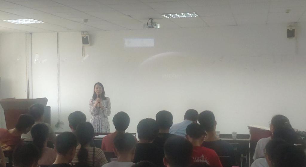 邝砾老师总结发言,她让同学们为三位指导老师的辛勤付出鼓掌,为自己的努力鼓掌,为学院提供实训机会鼓掌,并寄语同学们,以实训项目为起点,在大学四年中,多多参与实践性项目,注重动手实践能力的提升。