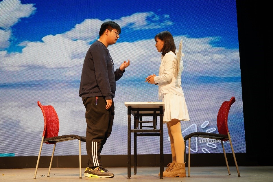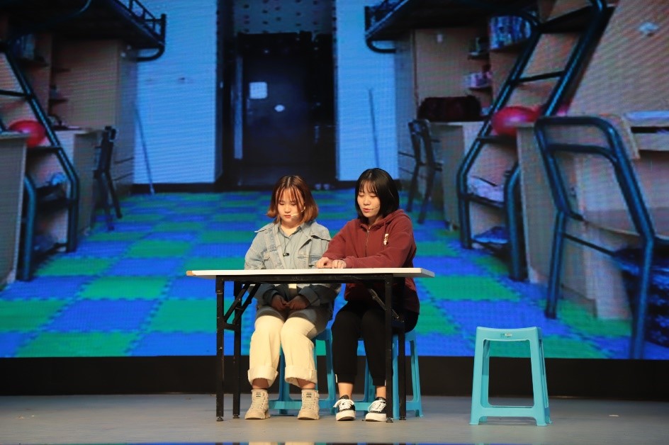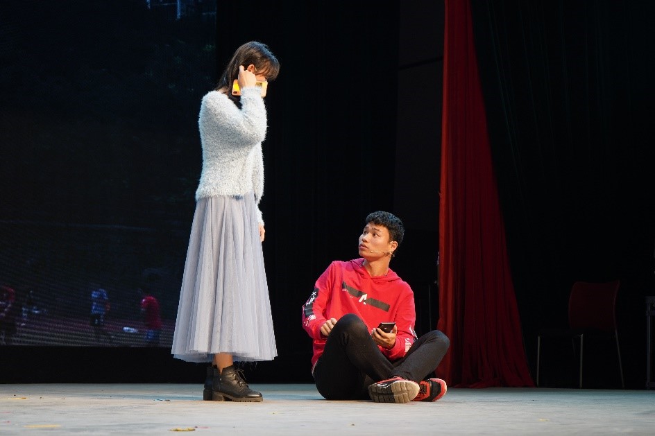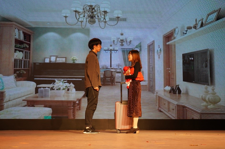 资源与安全工程学院则为我们带来了别具一格的短剧《颠倒》。其中,自由和开放的经历关注到当代同性和异性的关系,矛盾处理的十分精彩,真情的流露也激发起观众对于不被世俗认可恋情的思考,获得了热烈的掌声。