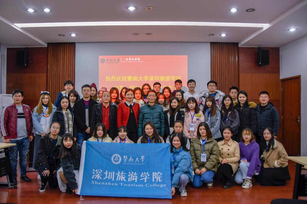 的四个建设,班团建设、学风建设、学生机构建设以及党支部建设,旨在提升学生的创新创业能力,在不久的将来为祖国高新技术领域效力。在师主任的详细解答后,暨南大学深圳旅游学院全体师生与我院全体师生进行合影纪念,两校的老师与学生各自分开进行进一步的交流与讨论。其中,老师们对教学方法的探讨,同学们对未来学业的规划,都为两校的交流工作添砖加瓦。