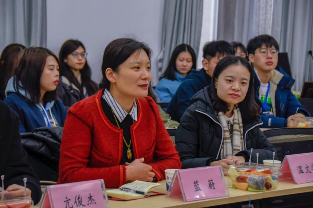 的诸位老师与学生代表就大学生思政、心理、双创等教育、港澳台侨学生教育与培养、学生组织在“三全”育人过程中实施的途径与方法、新时代二级学院团学组织的创新与发展等内容展开交流。