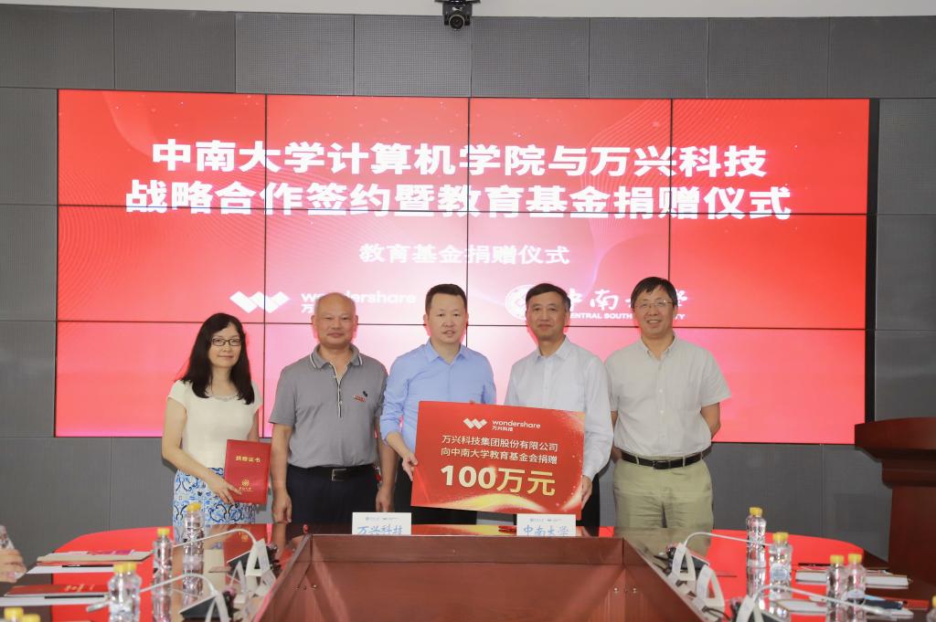 的战略合作协议》,张忠生教授和马洁副总裁共同签署了教育基金捐赠协议。双方领导合影留念,王院长再次感谢了万兴科技对黄漫