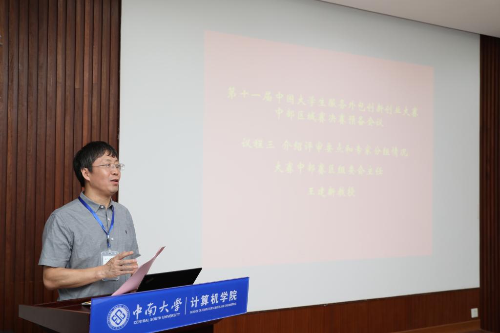 院长王建新教授为各位专家介绍评审要点和分组情况。5个答辩组全天紧张而有序地完成了决赛工作,将评选出45项一等奖和90项二等奖,希望一等奖团队能代表中部赛区取得优异的成绩。
