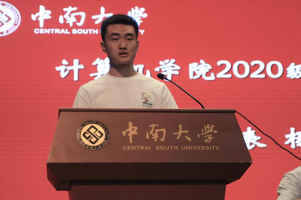 接下来是老生代表杨存典同学和新生代表王丹同学发言,杨存典以自身的经历为引,讲述自己所见所闻、所感所受,为学弟学妹们送上建议与祝福。王丹则代表全体新生表达了对中南的爱意,对师长的感激,以及对未来学习生活的信心。