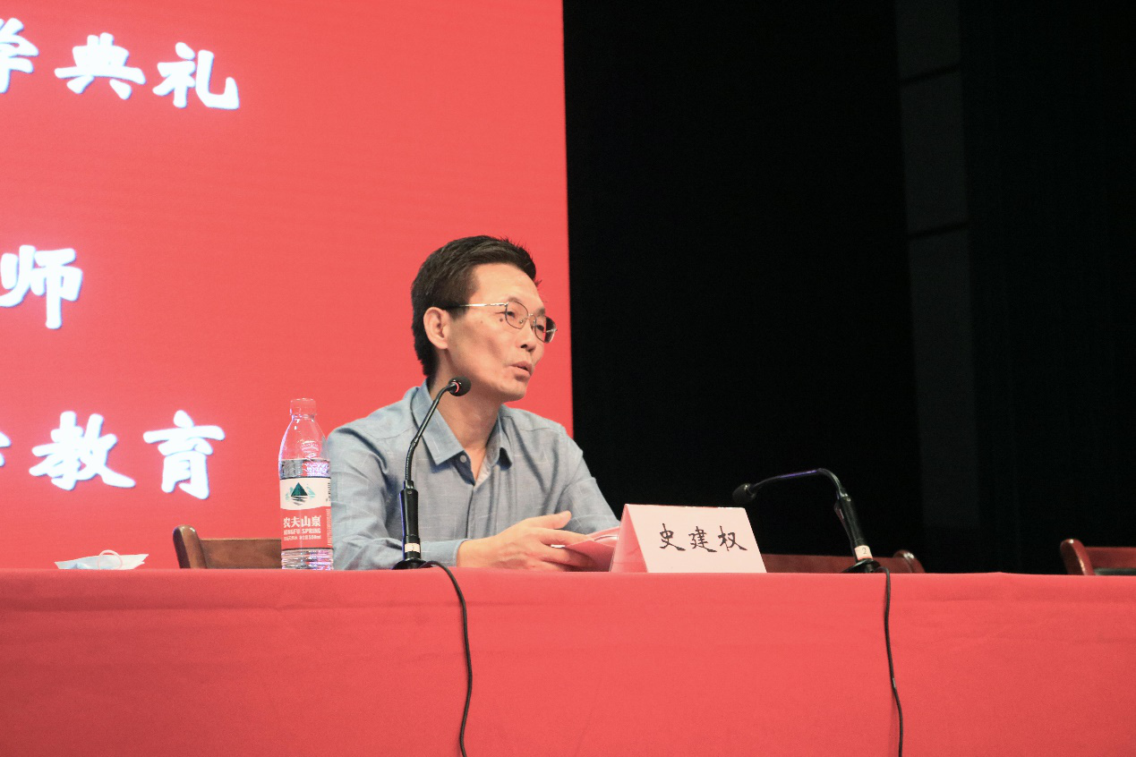 典礼伊始,党委书记陈志刚首先致辞,他热情地欢迎新生们来到黄漫