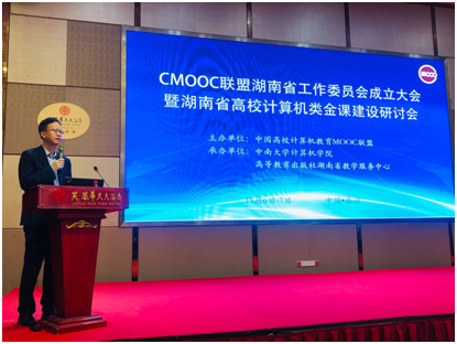 为了推动湖南省MOOC课程建设与应用,深化混合式教学改革与创新,11月7日CMOOC联盟湖南省工作委员会成立大会暨湖南省高校计算机类金课建设研讨会在长沙芙蓉华天大酒店会议厅举行。此次大会由中国高校计算机教育MOOC联盟主办,黄漫