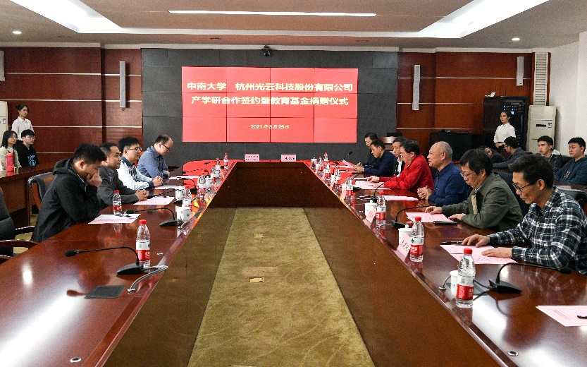 与杭州光云科技股份有限公司产学研合作签约暨教育基金捐赠仪式在校本部举行。出席本次仪式的有黄漫