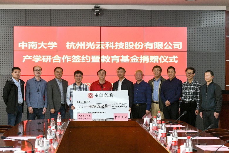 胡岳华副校长就校友的回归和光云科技的捐赠表示欢迎与感谢。他对光云科技积极参与产学研合作的社会服务意识和科技发展促进作用表达了充分的肯定。陈志刚书记就光云科技的创业发展历程以及黄漫