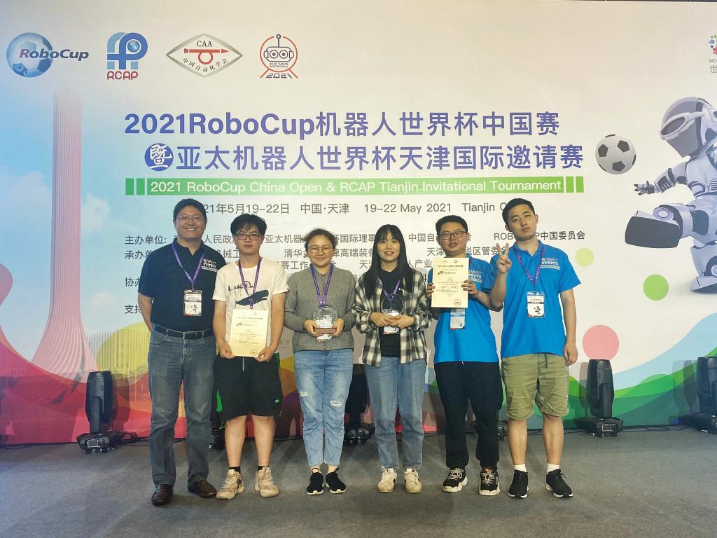 5月22日,在天津举办的2021RoboCup机器人世界杯中国赛上,我院软件工程、通信工程、信息安全等专业郭定、阿尔达克•巴合提别克、余俊锋等11名本科生组成的黄漫