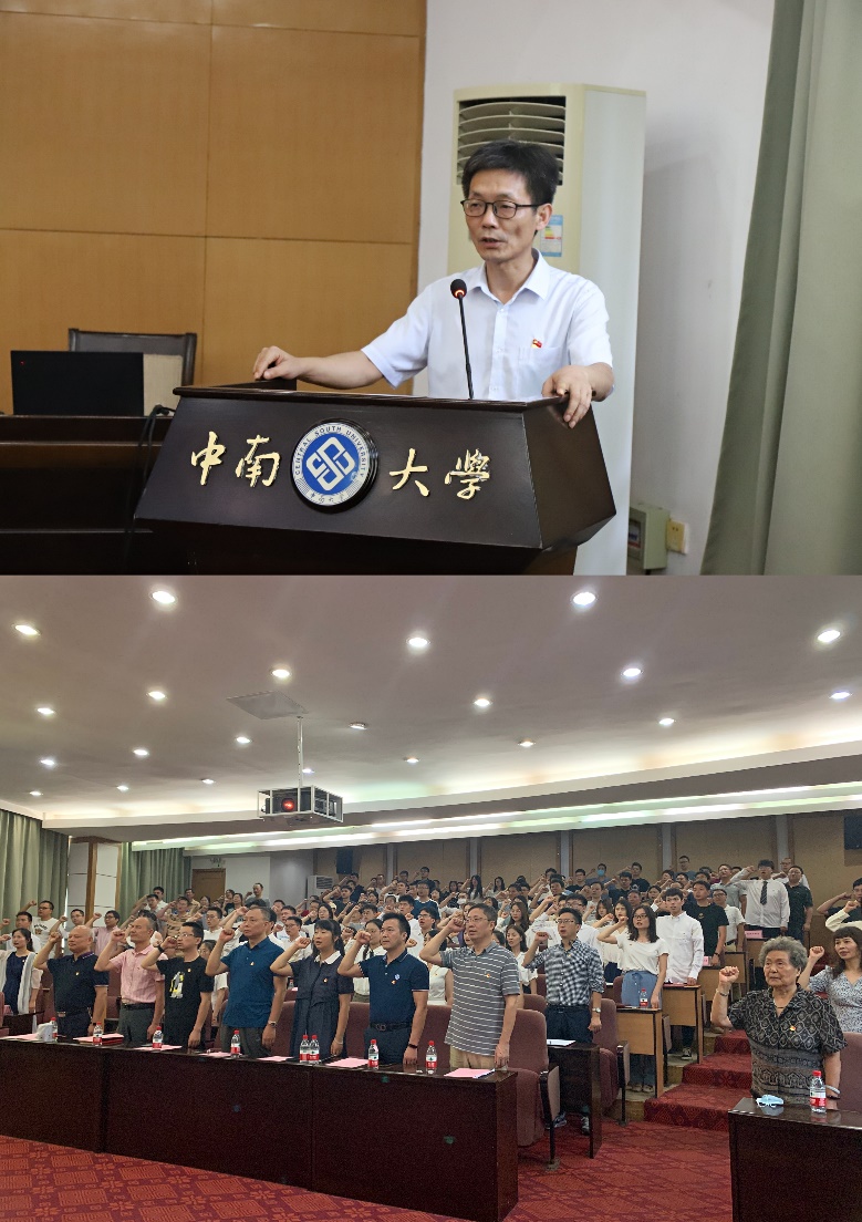 会上,学院党委副书记史建权带领全体参会党员重温入党誓词。段桂华作为先进党支部书记代表,石金晶作为优秀党员代表先后发言。