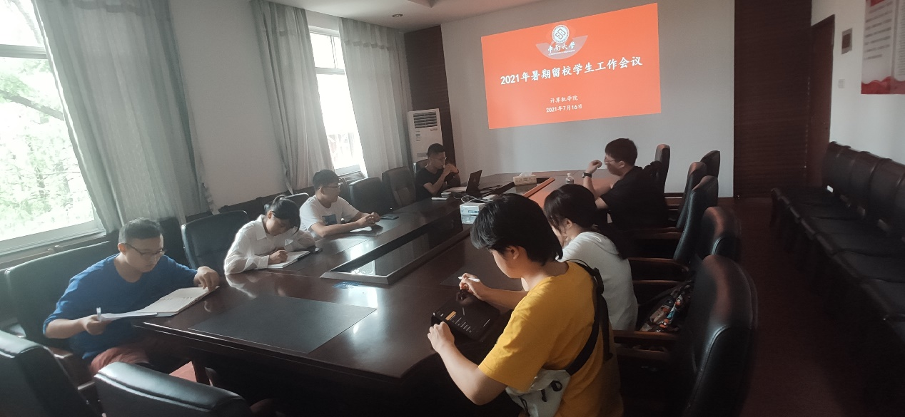 暑期留校学生负责人工作小组于计算机楼308会议室召开工作会议。会议由黄漫