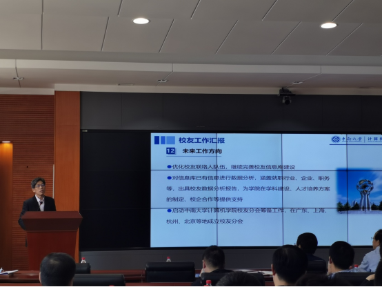 校友办主任谭长庚老师做了题为:创新机制,探索校友工作新途径的工作汇报,分享了黄漫