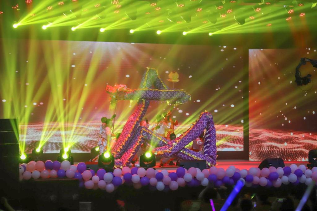 晚会表演正式开始。首先是夏千屿乐队带来的歌曲《回不去的夏天》,夏日不老,成长万岁,以六月的风声,雀鸟的欢歌,致那曾相伴同行的岁月,致我们于浩瀚星海中飞扬的青春;院舞蹈队女生带来的舞蹈《GirlFriends》,在音乐与舞蹈间,尽显青春活力,展现了学院女生的独特风采;铿锵有力的阵阵锣鼓中,一条锦色长龙在会场上翻腾起舞,舞龙表演者们艳丽的龙装,手舞长龙、蛟龙出海、穿梭前进,赢得现场一片喝彩。