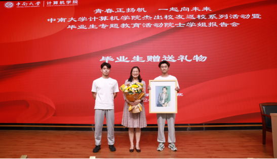 讲座结束后,毕业生为院士学姐献上了一份特别的礼物,一份用最原始的二进制“0、1”绘制的画像。