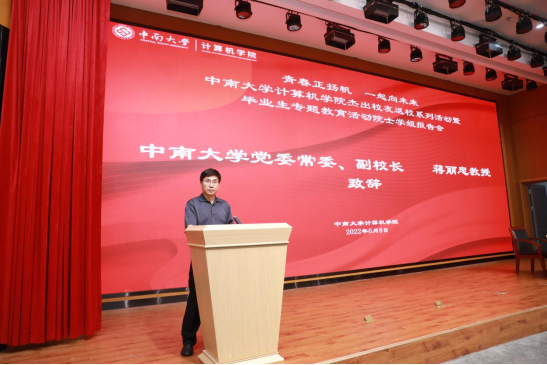 的渊源,结合陈院士的奋斗经历,勉励毕业生以陈晓红院士为榜样,从陈院士的讲座中汲取知识,汲取智慧,汲取力量。并祝福毕业生沿着陈院士的脚步,珍惜时光,刻苦学习,求真务实,砥砺前行,成为有本领有担当的新时代青年。