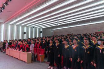 典礼在庄严的国歌合唱中拉开了序幕。学院党委书记陈志刚教授代表学院向全体毕业生表示热烈祝贺,同时向辛勤培育陪伴毕业生成长的老师和家长致以崇高的敬意,他鼓励毕业生们在未来的人生道路上不落俗手、磨砺本手、巧出妙手,用奋斗书写追逐梦想的青春答卷。他寄语毕业生“将“知行合一、经世致用”的校训收入行囊、向善求真唯有容校风融入心中,在新的人生路上,直面挑战、勇担使命,把握未来、砥砺奋进!”