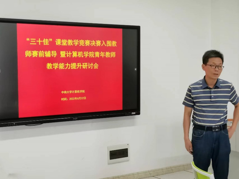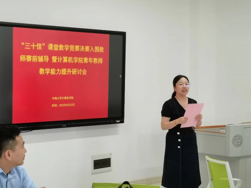 为进一步加强学院教师队伍建设,调动青年教师的教学积极性与创造性,提升教师教学水平,推动教学改革创新,我院于2022年6月22日在信息楼502智慧教室开展“三十佳”课堂教学竞赛决赛入围教师赛前辅导暨青年教师教学能力提升研讨会,这是该智慧教室启用后的第一次教研活动。本次会议邀请了信息与网络中心副主任刘中宇、学院党委副书记史建权、学院副院长石金晶、学院教指委委员刘卫国教授、省教学竞赛一等奖获得者漆华妹副教授担任指导专家,学院参赛教师和青年教师参加会议,会议由我院副院长石金晶教授主持。