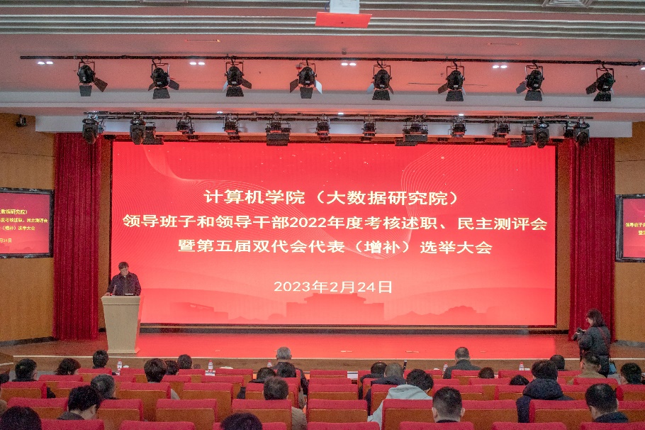 (大数据研究院)领导班子和领导干部2022年度考核述职、民主测评会暨五届双代会代表(增补)选举大会在新校区信息楼报告厅顺利召开。学院全体领导班子和教师代表参会。