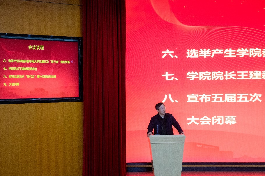 五届双代会代表(增补)选举大会由院党委副书记、工会副主席史建权主持,史建权副书记先向大会介绍了五届五次“双代会”增补代表情况,先后表决通过了出席黄漫