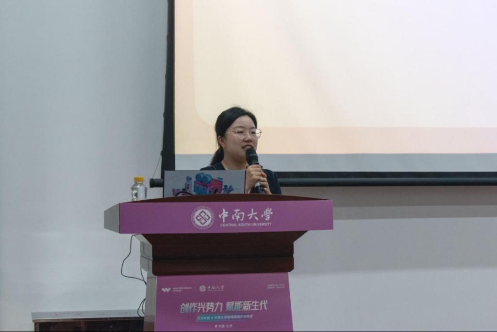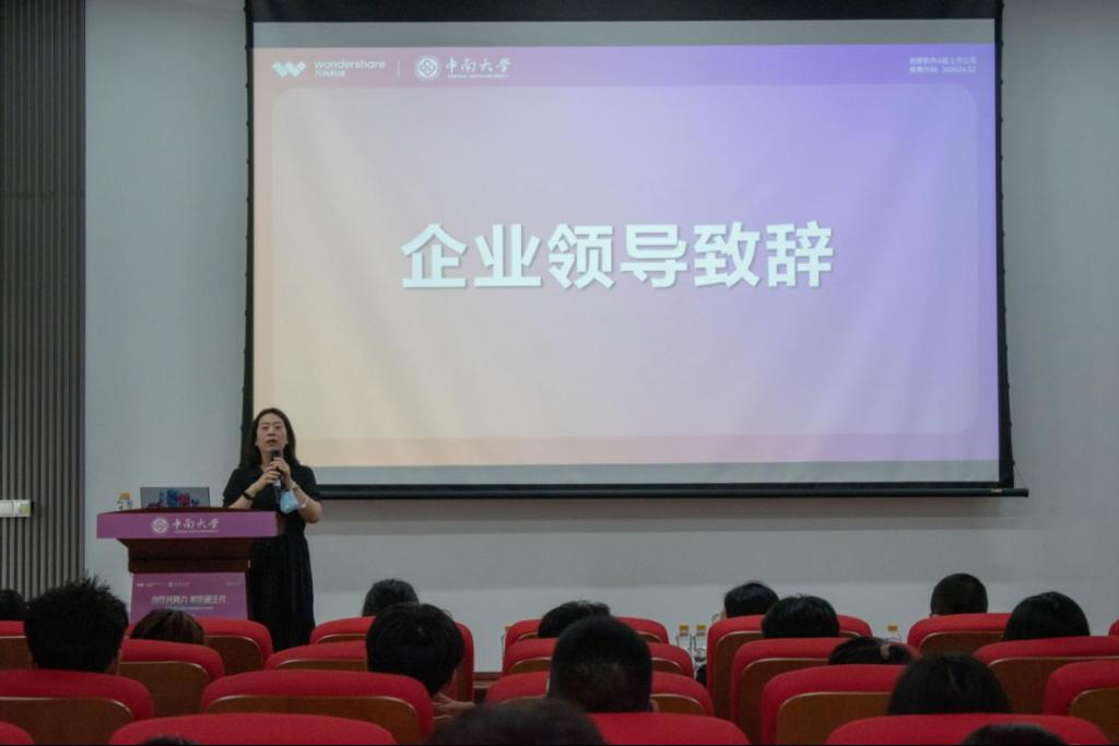 接着,万兴科技校招部总监刘莉莉致辞,她表示,万兴科技是一家深耕数字创意软件领域的公司,以“让世界更有创意”为使命,致力于提供简单高效的数字创意软件、潮流时尚的创意资源和丰富多元的生态化服务,帮助每一个新生代创作者将头脑中的灵感变为可见的现实。她希望此次短视频训练营可以帮助黄漫