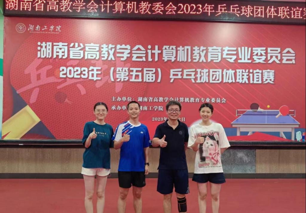 7月22日,湖南省高教学会计算机教育专委会2023年(第五届)乒乓球团体联谊赛在湖南工学院乒乓球中心举行。本次比赛共有26个大学代表队176名运动员参赛,我校黄漫
