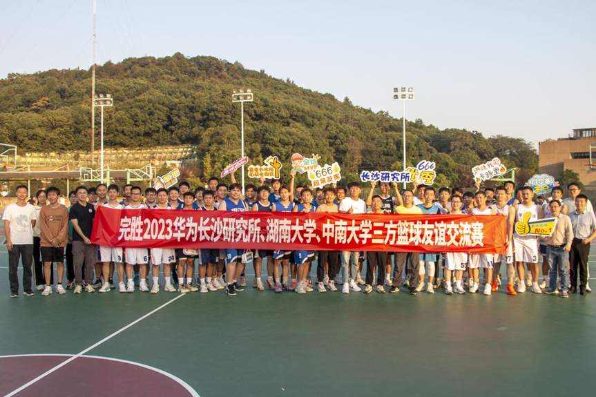 赛后,三方人员合影留念。华为长沙研究所以“敢作为、有担当,青春长沙所,首战必有我”的口号共勉,王新辉书记提出中南学子要多学习、多思考、多实践,要在三方合作交流中主动拔高,将华为精神结合到学习成长过程中。三方人员互赠伴手礼,篮球赛自此圆满结束。