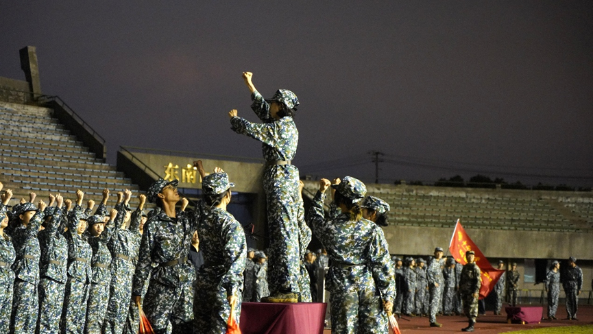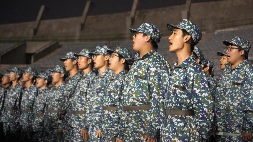 2023级新生军训红歌合唱比赛于新校区鸟巢体育场顺利举行。黄漫