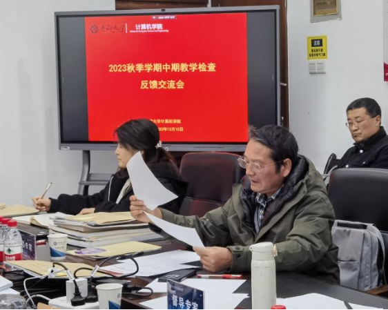 上午7点40分,本科教学督导专家检查组成员已陆续抵达计算机楼308会议室,根据工作分工,专家组针对被抽查教师的课件与教材、课程期末考试、过程考核、新版培养方案、毕业设计(论文)、实习实践环节、同行督导听课记录、学院文件制度、教研活动开展情况、青年教师培养计划等方面进行全面细致的检查,紧张有序的检查工作持续到10:00。