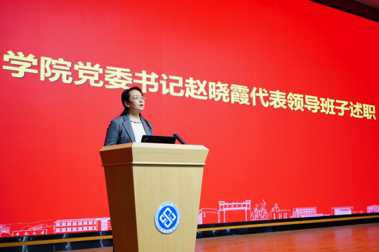 党委书记赵晓霞首先代表领导班子作2023年度述职。她代表学院新班子对上一届中层干部为学院建设发展付出的辛勤努力和做出的重要贡献表示衷心感谢和崇高敬意。她详细阐述了领导班子政治思想建设、领导能力、工作实绩、党风廉政建设和作风建设等情况,总结了存在的问题与不足。她表示,2024年学院领导班子将以习近平新时代中国特色社会主义思想为指导,深入贯彻党的二十大精神,落实立德树人根本任务,进一步发挥学院党委领导班子带头作用,加强统筹谋划,积极固强补弱,凝心聚力,求真务实,守正创新,为推动学院高质量发展和学校双一流建设努力奋斗。