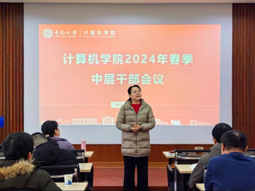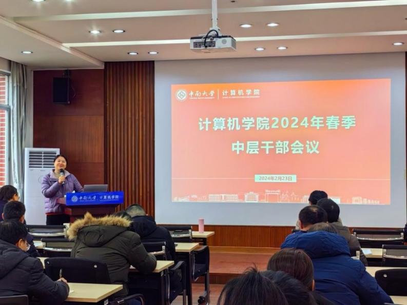 2024年春季中层干部会议在计算机楼313会议室召开,院党委书记赵晓霞主持会议,学院领导班子和全体中层干部参会。