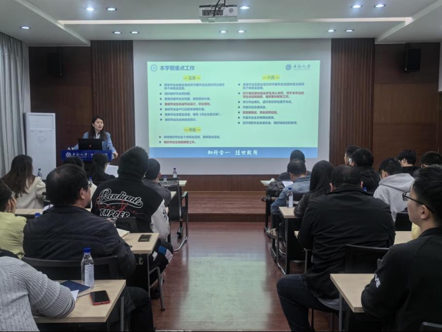 会议伊始,李梦老师从学分管理、毕业去向、升学规划以及就业策略等多方面详细解读了毕业生工作的要点。她表示学院始终关心毕业生未来,将为毕业生提供全方位职业生涯规划指导服务。她希望班导师和学生干部深入了解毕业生需求,提供个性化指导。学院将持续完善升学指导体系,加强就业合作,举办相关活动,助力毕业生了解社会需求和行业动态,顺利迈向人生新阶段。
