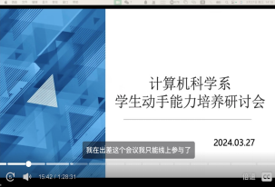 系主任王斌远程做了经验分享,目前大模型对软件开发的冲击非常大,这是由于大模型可以大大提升软件开发人员效率。部分学校已经开始用大模型来做助教,可以快速回答学生的问题。建议各位老师思考下:大模型对所授课程的有什么影响?如何使用大模型来辅助课程教学来提高学生学习效率?是否可以探索一种大模型+ChatGPT加持的动手能力培养模式?