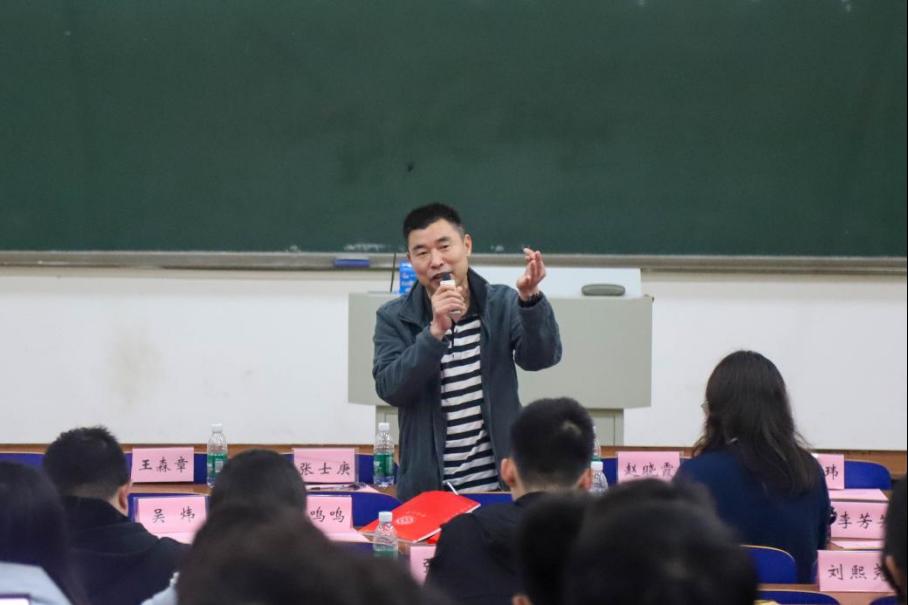 党委副书记王新辉做总结并强调了榜样的力量。他勉励同学们借助榜样力量认准方向,敢去突破,敢于超越,树立好目标。他表示,大学最重要的是定好规划,结合自己的兴趣爱好和特长,厘清未来的发展方向。他强调了各年级间交流的重要性,鼓励各年级的同学打破沟通壁垒,积极交流,增强师生互动,勇于分享自己的想法。