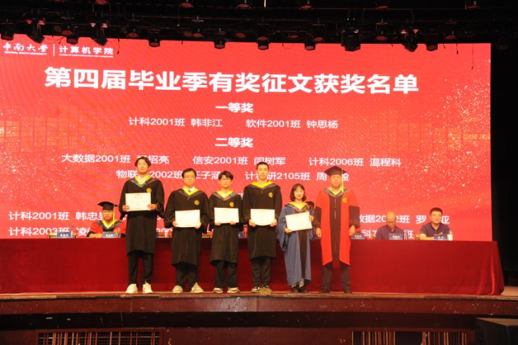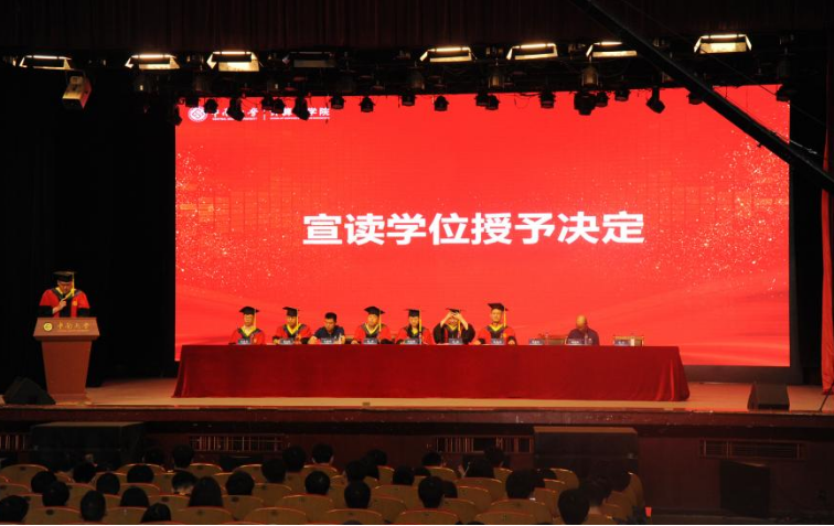最后,各系代表教师为毕业生授予学位。毕业生们身着学位服依次走上舞台,学院老师为他们拨穗正冠,颁发学位证书并合影留念,现场气氛热烈。