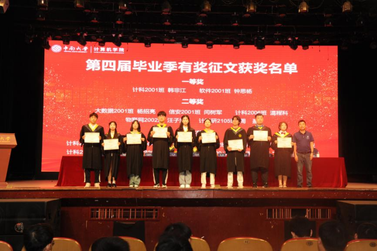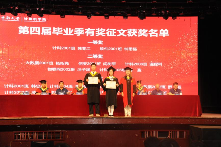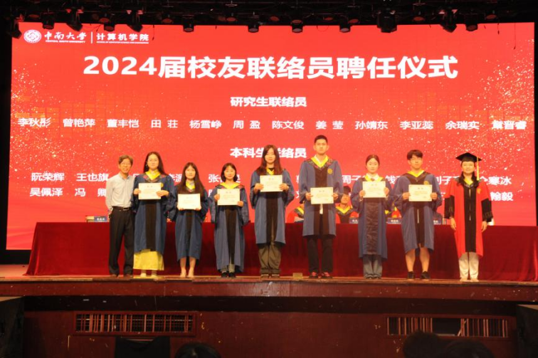 随后,学院党委副书记王新辉宣读第四届毕业季有奖征文获奖名单并进行获奖学生颁奖仪式。赵书记与李院长为2024届校友联络员颁发聘任证书。